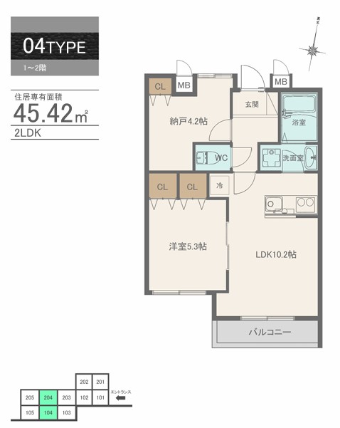 | 専有面積 | 45.42㎡ | ||